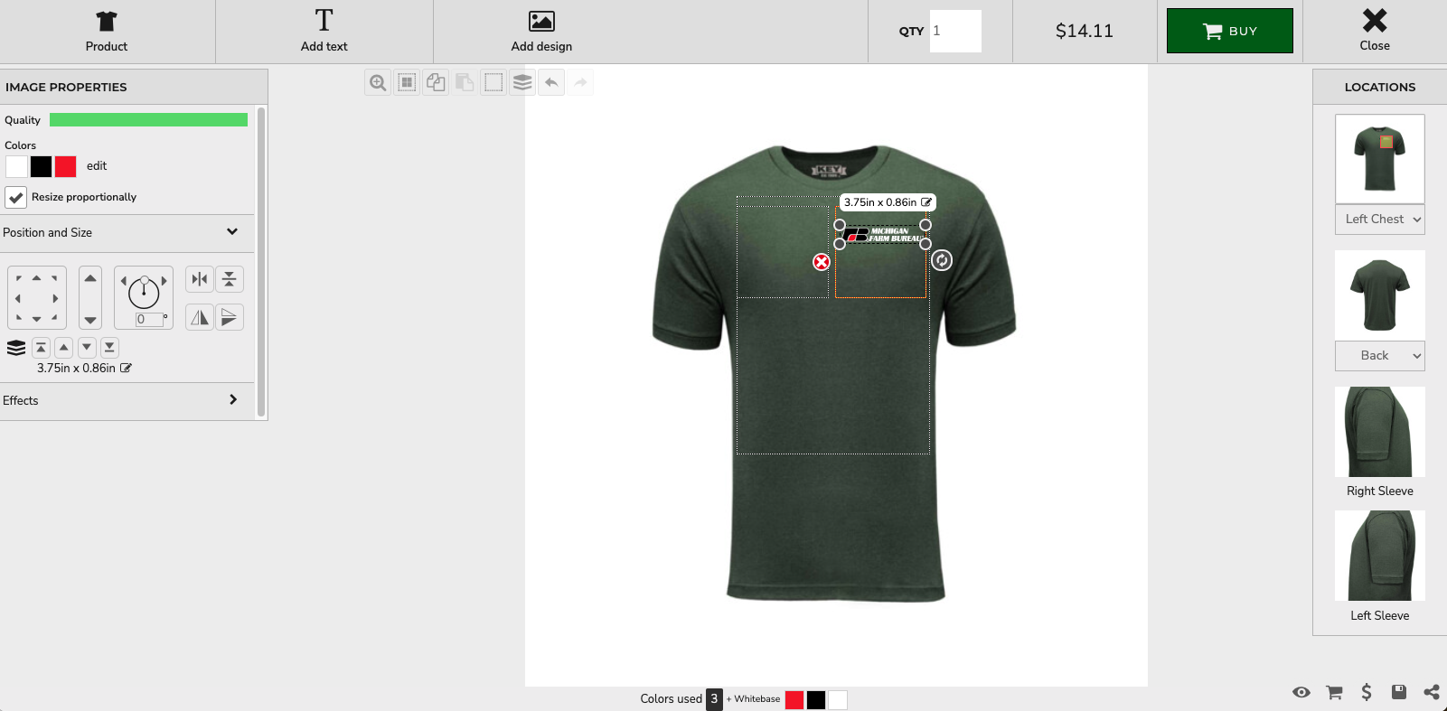 Note: In the left Image Properties panel, the Designer toggles allow you to adjust placement and size of the design.