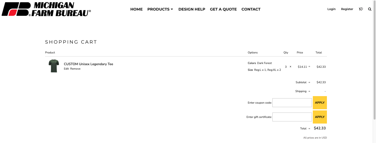 Note: Insert the quantity of garments needed in your size. If you forget to do this now, the Designer will prompt you later.